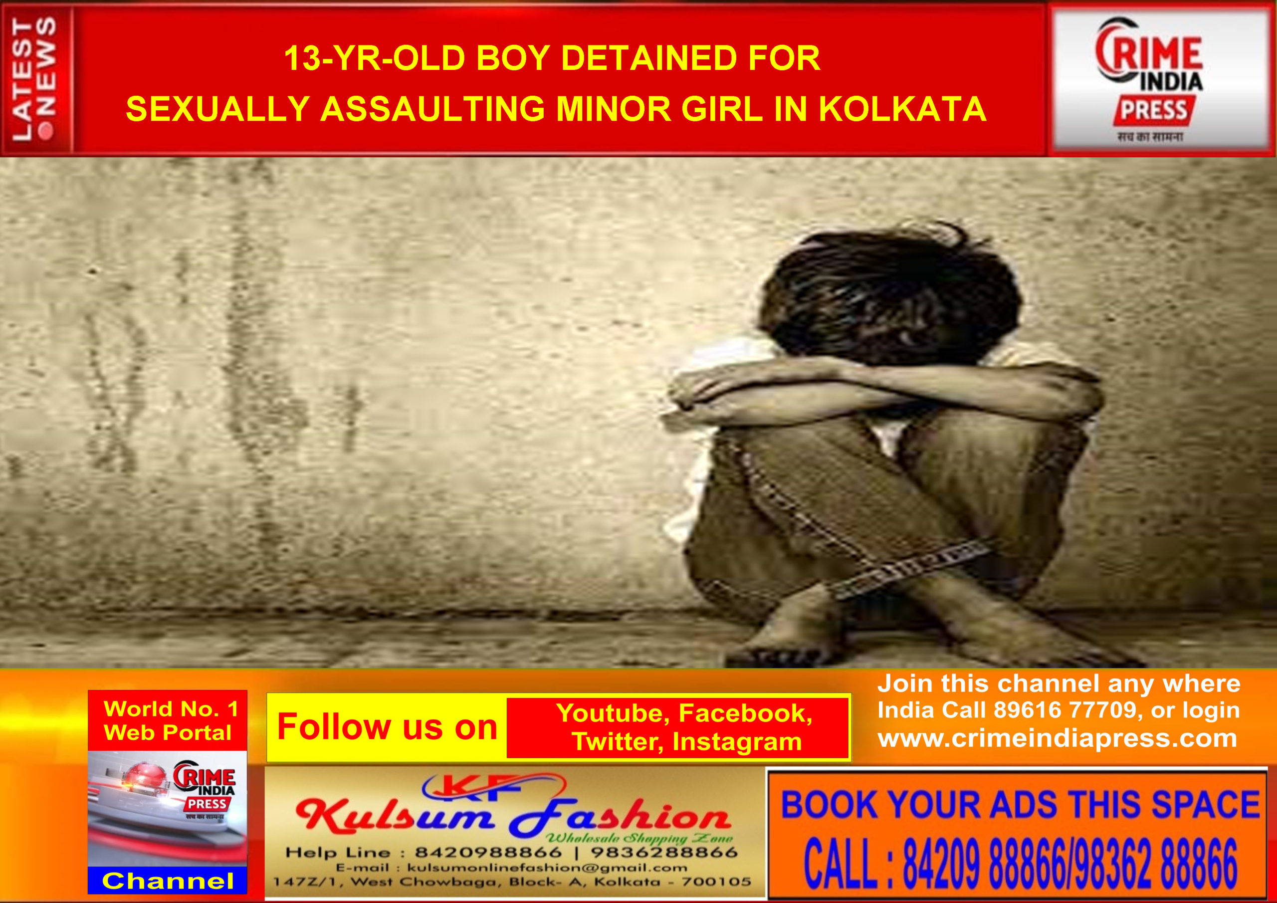 কলকাতা, ক্রাইম ইন্ডিয়া সংবাদদাতা : নাবালিকা মেয়েকে যৌন নিপীড়নের অভিযোগে ১৩ বছরের এক ছেলেকে আটক করেছে কলকাতা পুলিশ। 5 বছর বয়সী মেয়েটিকে, যার প্রাইভেটে গুরুতর আঘাত ছিল, তাকে কলকাতার শেঠ সুখলাল কারনানি মেমোরিয়াল হাসপাতালে (SSKM) হাসপাতালে নিয়ে যাওয়া হয়েছিল। অভিযুক্ত নাবালক ছেলে, যিনি উত্তর কলকাতার বাগ বাজারের একটি হোস্টেলে থাকেন, তাকে জুভেনাইল জাস্টিস বোর্ড 14 দিনের বাড়িতে আটকে রাখার জন্য পাঠিয়েছে। পুলিশ জানিয়েছে, গ্রীষ্মের ছুটিতে ছেলেটি তার বাবার বাড়িতে গিয়েছিল। শুক্রবার বিকেল ৪টার দিকে অভিযুক্ত ছেলেটি এক নাবালিকা মেয়েকে যৌন নিপীড়ন করে বলে জানায়, সে পরিবারের এক বন্ধুর মেয়ে। এর পরে, ভুক্তভোগী অসুস্থ হয়ে পড়ে এবং তার গোপনাঙ্গ থেকে রক্তপাত শুরু হয়, পুলিশ জানিয়েছে। মা-বাবাকে জানানোর পর মেয়েটিকে চিকিৎসার জন্য এমআর বাঙ্গুর হাসপাতালে নিয়ে যাওয়া হয়। এরপর উন্নত চিকিৎসার জন্য তাকে এসএসকেএম হাসপাতালে স্থানান্তরিত করা হয়। তার চিকিৎসা চলাকালীন চিকিৎসকরা প্রকাশ করেন তাকে যৌন হয়রানি করা হয়েছে। সঙ্গে সঙ্গে পুলিশকে খবর দেওয়া হয়। ভবানীপুর থানার আধিকারিকরা তদন্ত করতে হাসপাতালে পৌঁছেছেন। পরে, যৌন অপরাধ থেকে শিশুদের সুরক্ষা (POCSO) আইন, 2012 এর ধারা 6 এবং 10 এর অধীনে কলকাতার কসবা থানায় একটি মামলা দায়ের করা হয়েছিল। অবিলম্বে নাবালকের বিরুদ্ধে তদন্ত শুরু হয়েছে। এরপর অভিযুক্তকে গ্রেপ্তার করে কলকাতার জুভেনাইল জাস্টিস বোর্ডের প্রিন্সিপাল ম্যাজিস্ট্রেটের সামনে হাজির করা হয়। জুভেনাইল জাস্টিস বোর্ডের একজন সদস্য পুলিশকে অভিযুক্ত ছেলেকে 9 জুন পর্যন্ত ধ্রুবাশ্রম, আড়িয়াদহ-এ হোম রিমান্ডে রাখার নির্দেশ দিয়েছেন, পুলিশ জানিয়েছে।